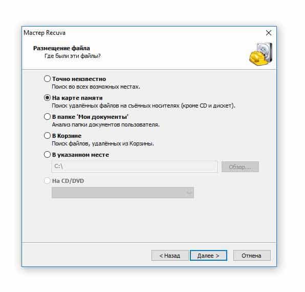 В качестве примера рассмотрим, как возвратить стертое видео через мастер Recuva: