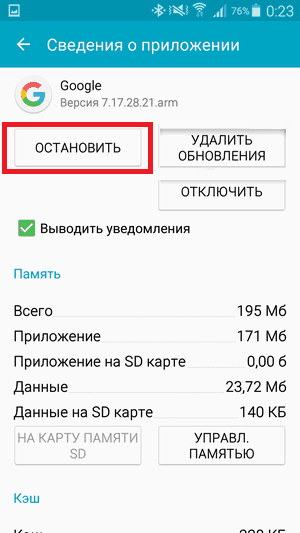 Отключение приложения Google