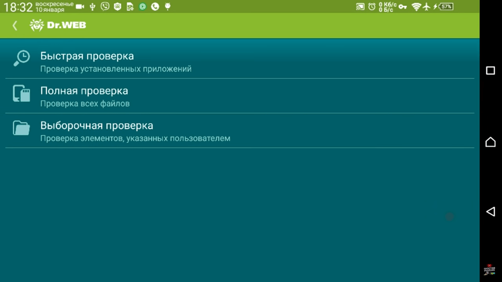 В Google Play можно скачать несколько таких известных антивирусов, как Eset, Norton, Dr. Web и другие. Они специально разработаны для мобильных гаджетов, при этом специализируются на поиске вирусов под Android. Например, в программе Dr.Web вам необходимо запустить сканер и нажать на «Полная проверка».