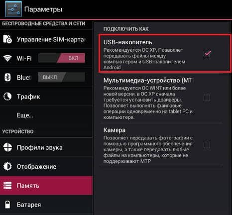 - Подключите смартфон к ПК. Выберите режим «USB-накопитель».
