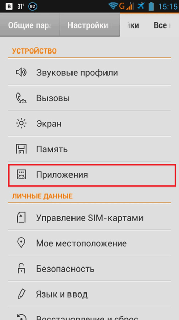 - Зайдите в раздел «Приложения» или аналогичный через меню настроек. На других телефонах пункт может называться «Диспетчер приложений».