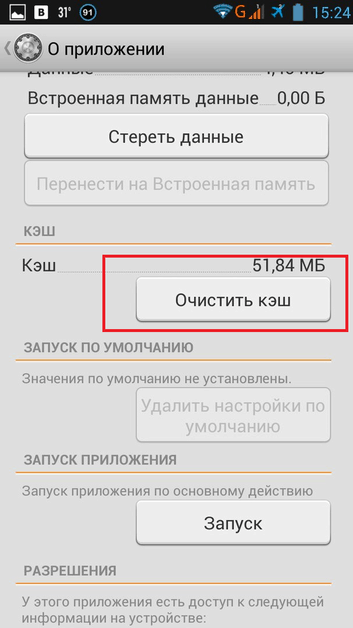 - На странице приложения прокрутите немного вниз. Нажмите «Очистить кэш».