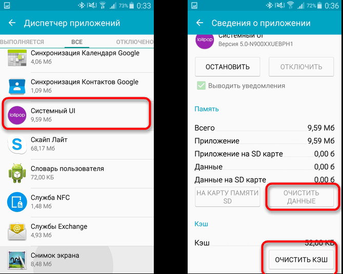 Очистка данных приложения «SystemUI» или «Системный UI»