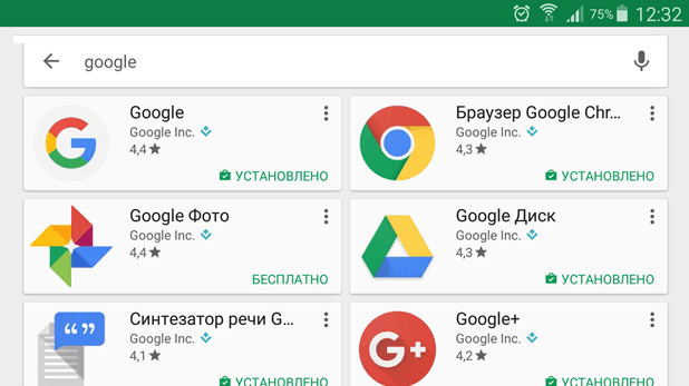 - Откройте Play Market. В поисковой строке введите слово «Google».