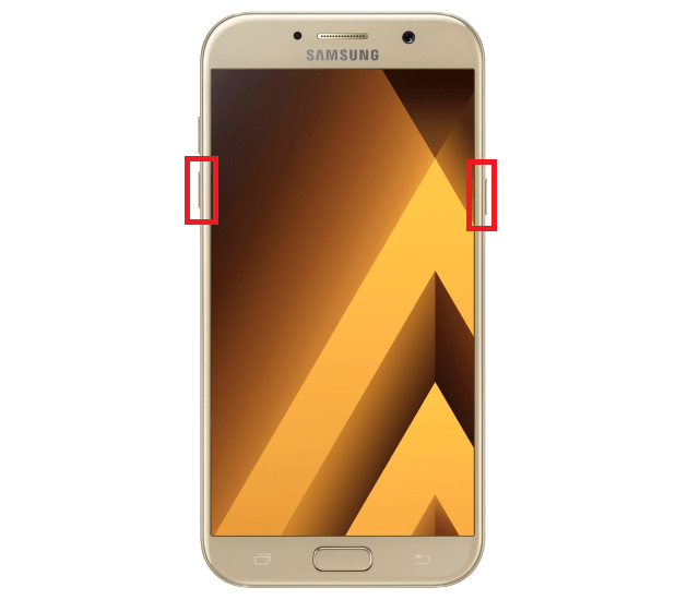 - Одновременно зажать кнопку регулирования громкости (позиция «тише») и выключения телефона (универсальный способ для всех Самсунгов);