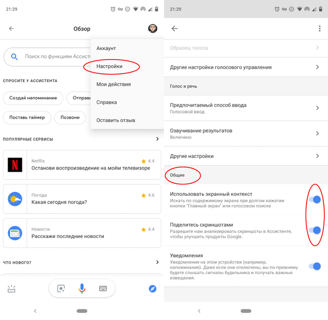 - Подключите в разделе «Помощник и голосовой ввод» опцию «Снимок экрана»;