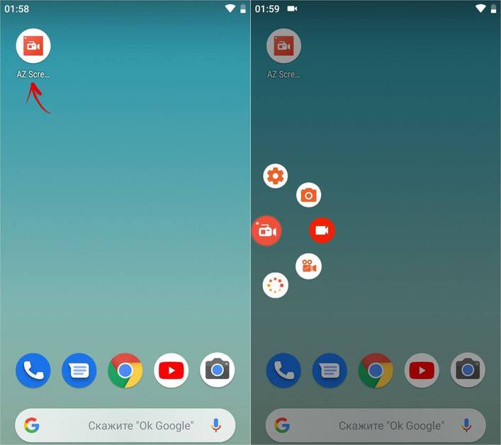 - В боковой части дисплея появится плавающая кнопка AZ Screen Recorder, при нажатии на которую откроется меню опций;