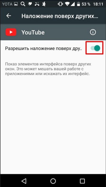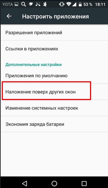 Анализируя причину предупреждения, сформулируем пять вариантов исправления наложения на Андроид версии 6 и выше.