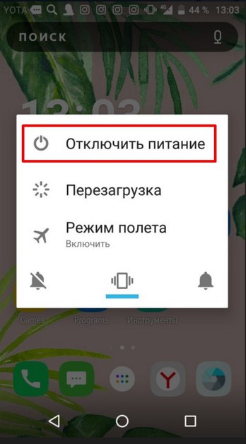 В безопасный режим переходим через меню, выпадающее по долгому тапу на экранной кнопке выключения, как описано выше.Что еще попробовать