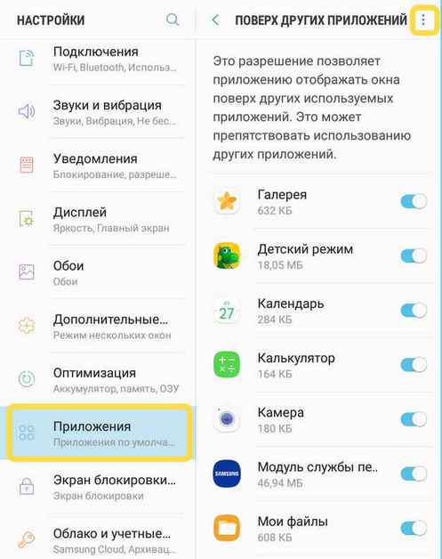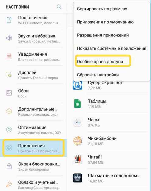 Для этого войдите в Настройки и откройте раздел Приложения. Право разрешения наложения поверх других окон спрятано в отдельный раздел. На телефонах Samsung это Особые права доступа. На гаджетах с чистым Андроид — кнопка с шестрёнкой. Как убрать наложения на смартфонах марки Xiaomi, рассказано ниже.